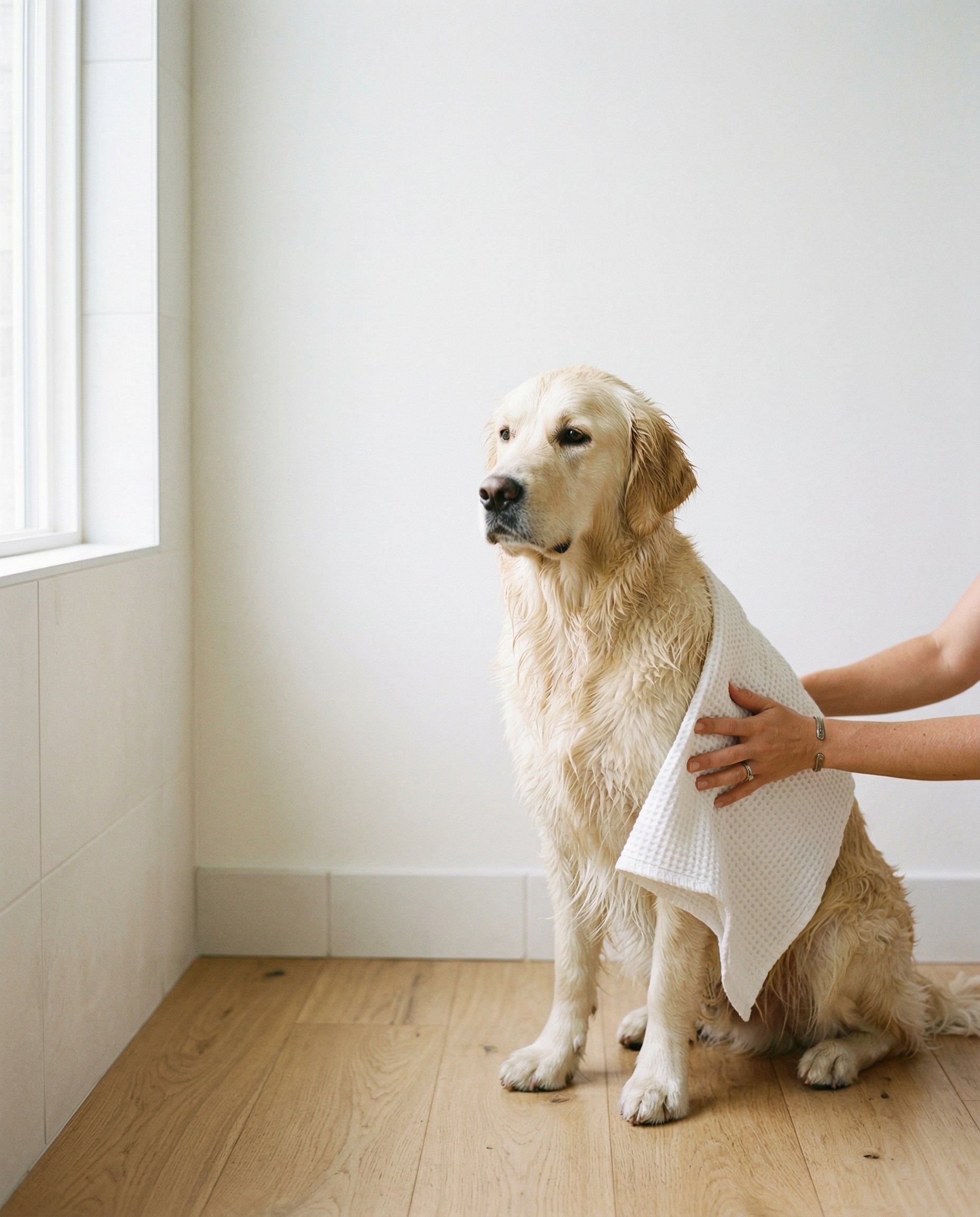 ⑤ 以柔軟毛巾輕輕吸乾水分