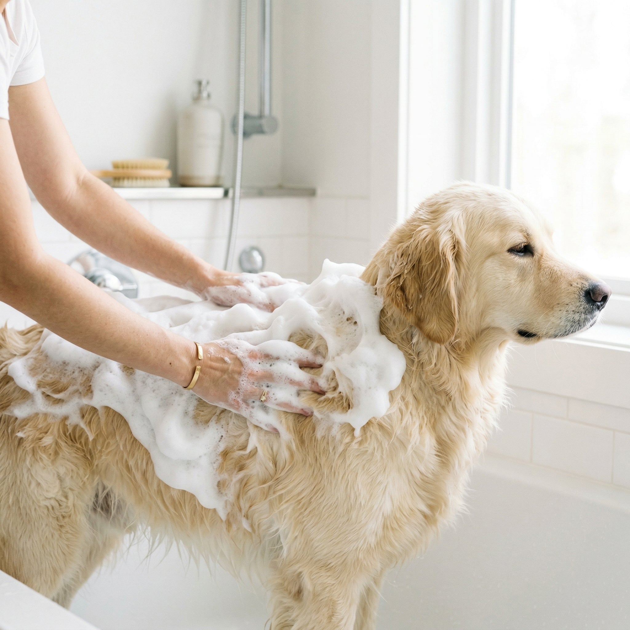 泡沫細緻綿密,包覆每一絲毛髮。低刺激配方,適合敏感肌膚犬種。