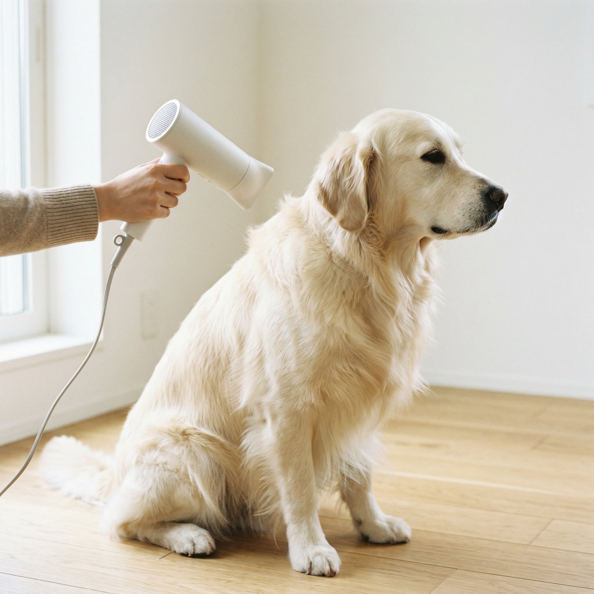 ⑥ 以吹風機充分吹乾,注意熱風不直接貼近皮膚
